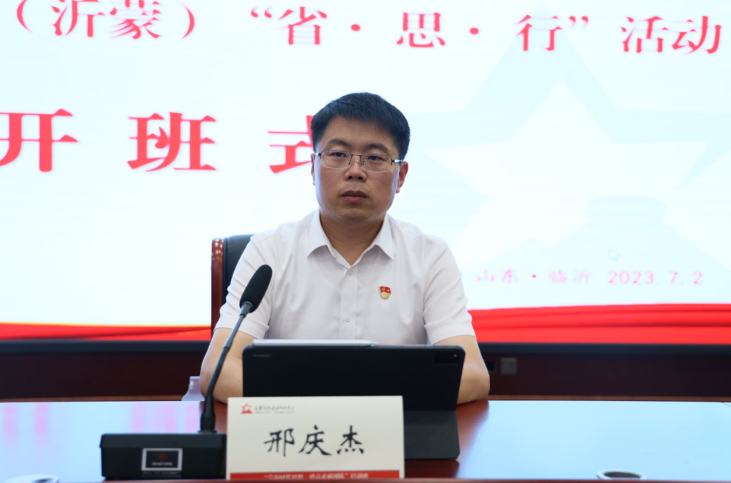 7月2日,“学新时代思想 建高素质团队”千亿官网2023年(沂蒙)“省·思·行”活动暨第五期党员培训班在沂蒙精神教育中心成功举办,千亿官网全体学员参加仪式。临沂沂蒙精神教育培训中心党支部书记、常务副主任邢庆杰出席仪式。会议伊始,全体起立奏唱国歌。