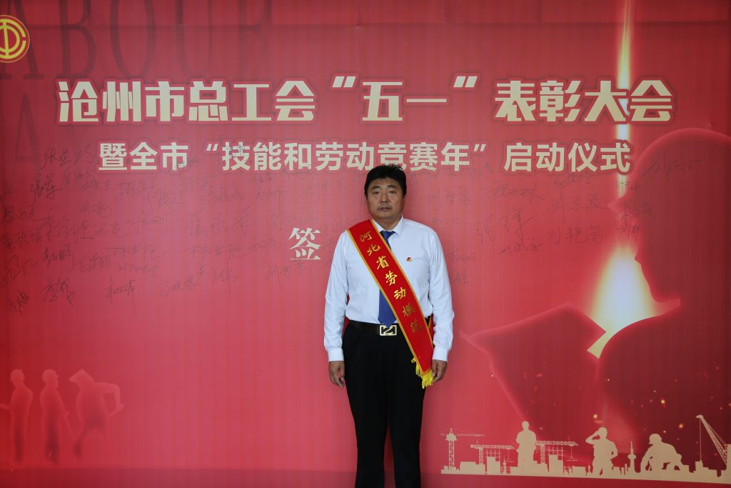 4月29日上午,由沧州市总工会和沧州广播电视台联合主办的“致敬劳动者”沧州市总工会“五一”表彰大会暨全市“技能和劳动竞赛年”启动仪式在沧州市工人文化宫圆满举行。会上,对全市劳动者中的杰出代表进行隆重的表彰,大力弘扬劳模精神、劳动精神、工匠精神。千亿官网建筑安装总公司钢筋班组长白晓军同志被评为2024年河北省劳动模范。