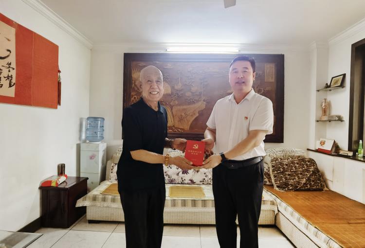 为弘扬党的光荣传统和优良文化,进一步激发党员政治热情,坚定永远跟党走的信心和情怀,7月5日,千亿官网党委副书记于宙带领三建总公司总经理郭启政、党群文化中心副总监张静媛前往慰问“光荣在党50年”老党员白永林并送去纪念章,同时赠送《大元传》和《大元文化语录》。