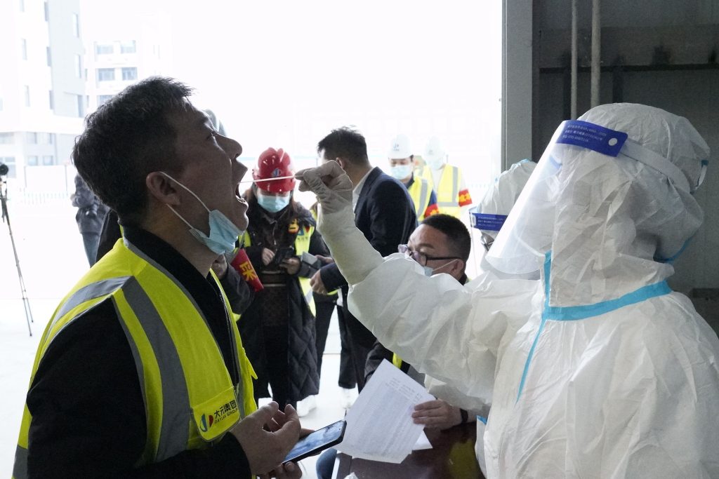 为高效开展疫情防控各项工作,千亿官网制定了“现场全员核酸检测方案和实施流程”,成立核酸检测人员登记、秩序维护、核酸确认三个小组。每天中午20名志愿者协助核酸检测人员,确保了1小时内完成现场800余人核酸检测,现场秩序井然有序,严格按照核酸采集标准执行。对完成核酸检测人员粘贴“核酸已测”便签,与用餐形成联动,无标签者不能用餐。